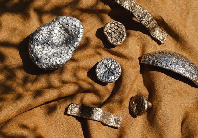 Made from lost wax castings using moulds formed from real lemons and inspired by the tactility of honeycomb, Highbury features a curated selection of cabinet knobs, cabinet handles, cup pulls and finger pulls that feature intricate surface textures. Exclusively available in silicon bronze or white bronze, as living materials each piece will develop its own unique patina as the product ages.