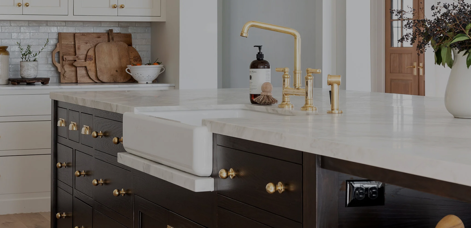 Synonymous with impeccable style and one of the most coveted interior design studios in the industry, Studio McGee are an inspiration for design lovers all over the world. As seen here in their own family home, get the look of Studio McGee's English inspired modern kitchen and boot room with our luxury brass cabinet hardware and explore their covetable kitchen here.